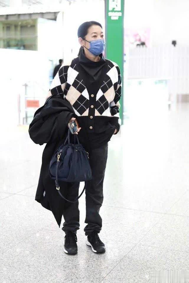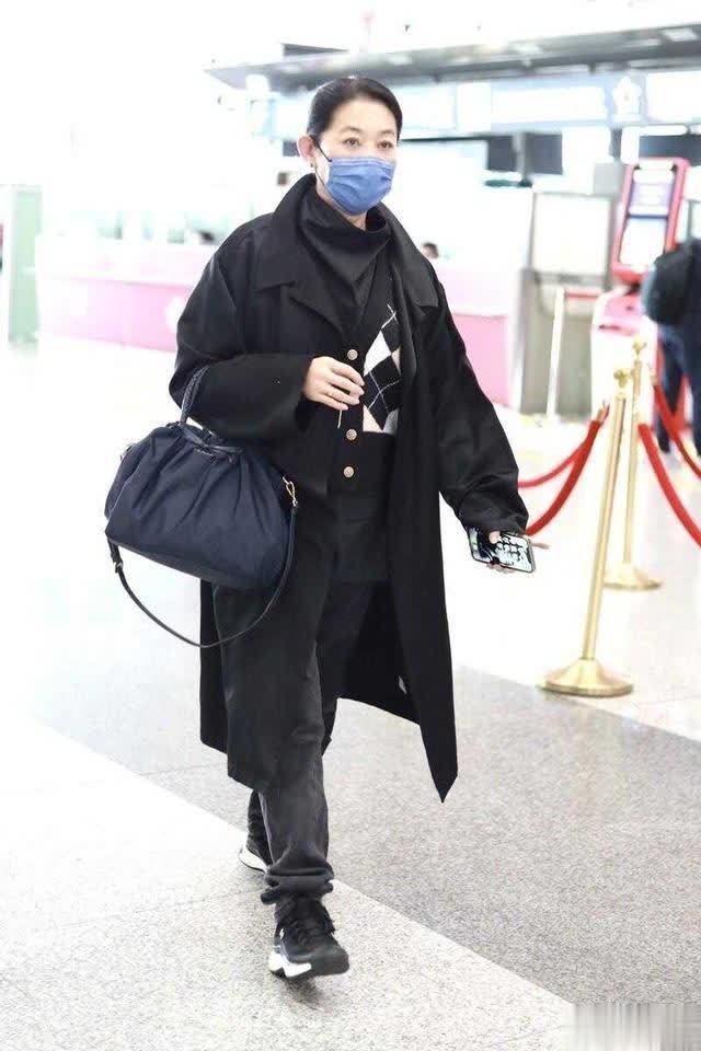 倪萍走机场大变样!绿大衣配宽松牛仔裤,洋气美出新高度